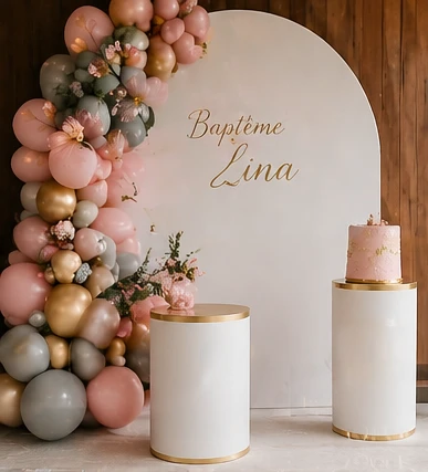 Chaque création est entièrement personnalisable : couleurs, style, prénom, message, ambiance… afin de garantir une décoration unique et cohérente pour votre événement.